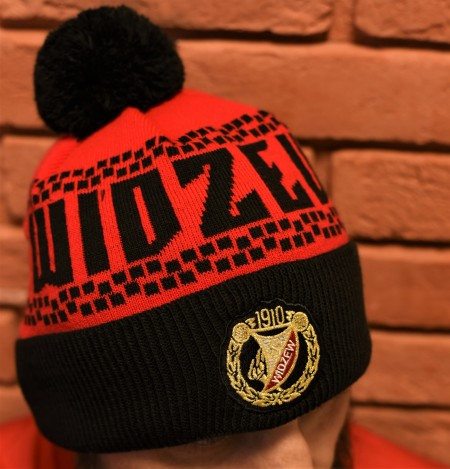 Czapka z pomponem WIDZEW (czarny napis) – dziana czapka z haftem