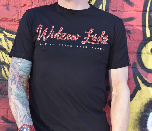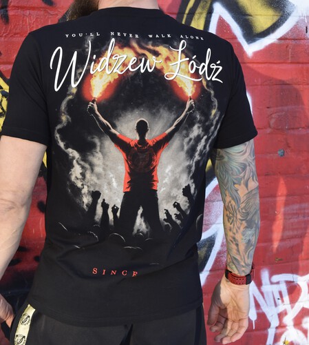 Czarna koszulka YOU’LL  NEVER WALK ALONE z nadrukami to idealny wybór dla prawdziwych fanów, którzy chcą wyrazić swoje wsparcie dla drużyny zarówno na stadionie, jak i na co dzień. Wykonana z wysokiej jakości 100% bawełny, zapewnia komfort noszenia, przewiewność oraz trwałość nawet po wielu praniach.
