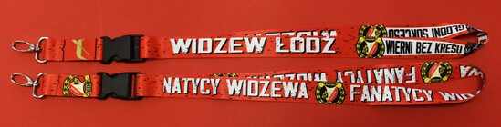 smycz drukowana dwustronnie z karabińczykiem, z motywem kibicowskim, szerokość 2,5 cm