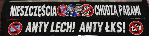 szal z miękkiej włóczki akrylowej, z motywem kibicowskim, dwustronny