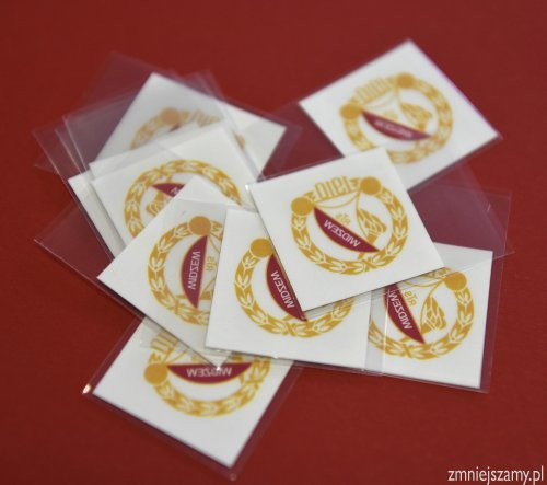 Średnica 3 cm sprawia, że doskonale wygląda na dłoni, ramieniu lub policzku – idealny gadżet na mecz, event lub spotkanie fanów.