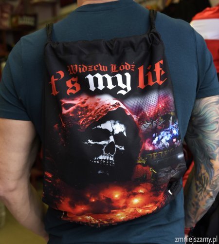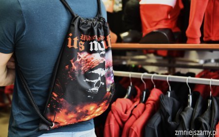 Funkcjonalny workoplecak, drukowany z tkaniny wodoodpornej z ciekawą grafiką, wymiary 35 x 43 cm.