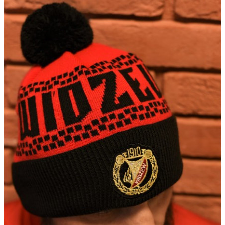 Czapka z pomponem WIDZEW (czarny napis)